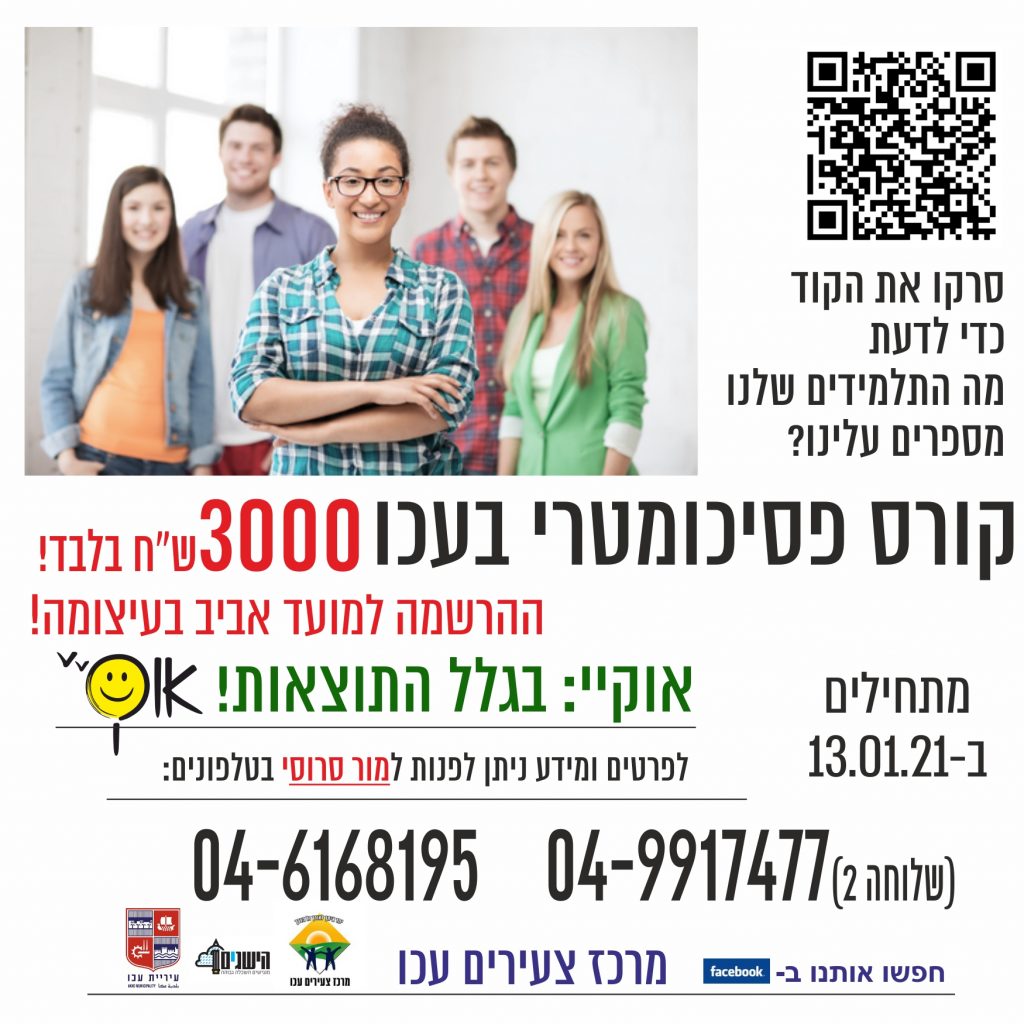 מסתיימת ההרשמה לקורס פסיכומטרי פרימיום בסיוע העירייה ומרכז צעירים בעכו, מועד אביב 2021.