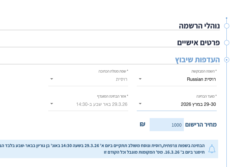 После завершения обычной записи на психометрический экзамен, на сайте Израильского Центра Экзаменов и Оценки открывается поздняя запись.